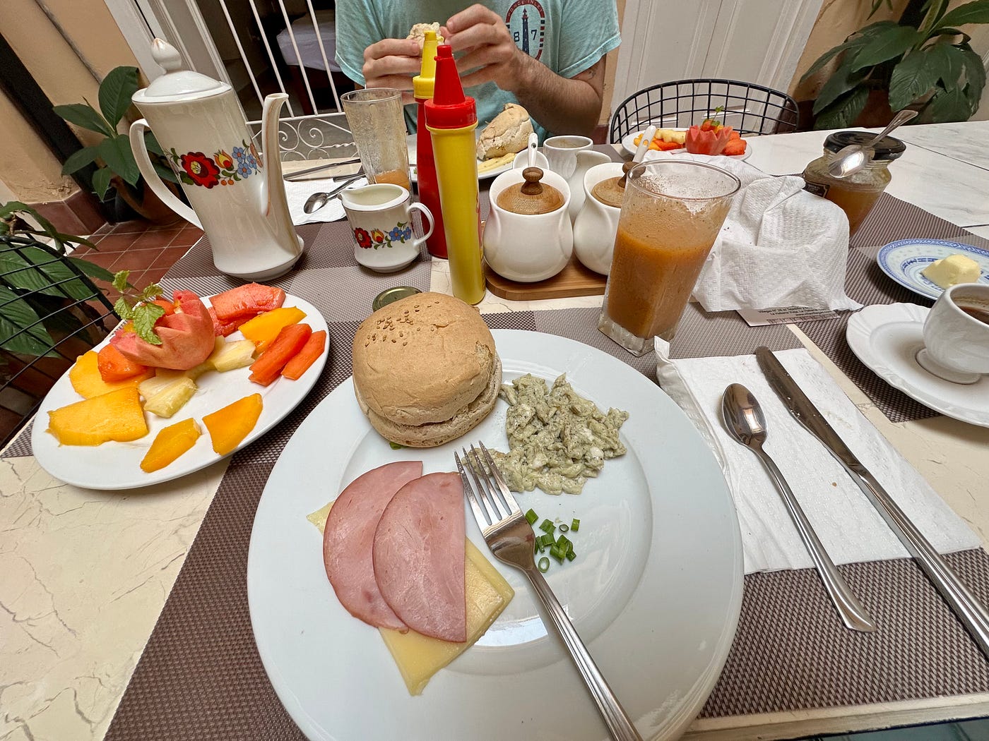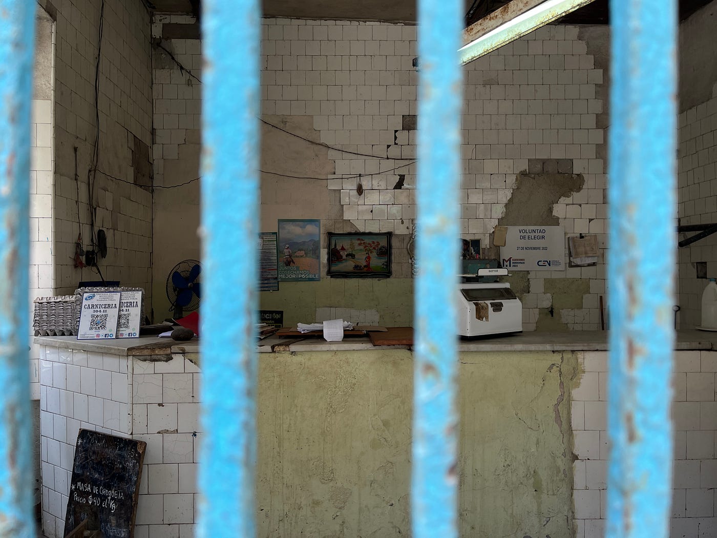 Our first breakfast at the Villa Villegas casa particular revealed some bread with an eye-catching shape and color, as well as eggs that looked slightly different in color than what we were used to. In Cuba, the state heavily subsidizes certain specific food staples that are allocated to citizens in a regulated quantity. We learned that after the Cuban revolution, private corner bodegas that provided food and supplies for lower-income immigrants to the country were transitioned into government-managed outposts of food. Rations would be regulated and distributed to citizens via markings on an individual paper-based supplies booklet, or Libreta de Abastecimiento, which is still in use today. While seemingly regular in concept, much of these supplies are sporadic, and word-of-mouth is an essential way of knowing when certain products arrive to these shops.
